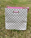 This White Checkered Bucket Bag exudes a boujee vibe with its trendy and stylish design. Featuring a pink interior and a middle zipper pocket, it offers both functionality and sophistication. Its adjustable and removable strap adds convenience and versatility. A must-have purse for any fashion-forward individual. 11"x11.5"x10"