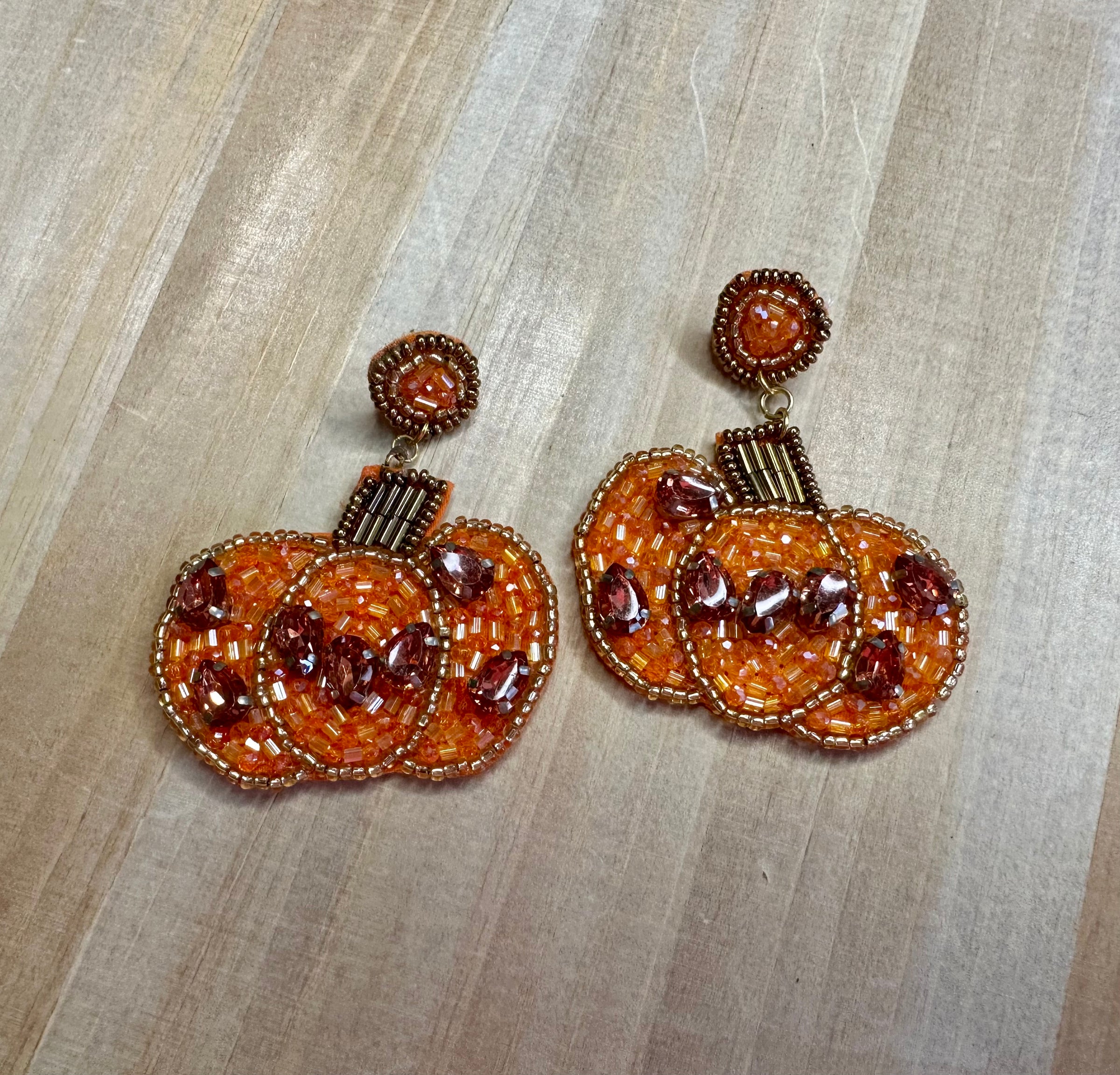 Beaded pumpkin earrings.